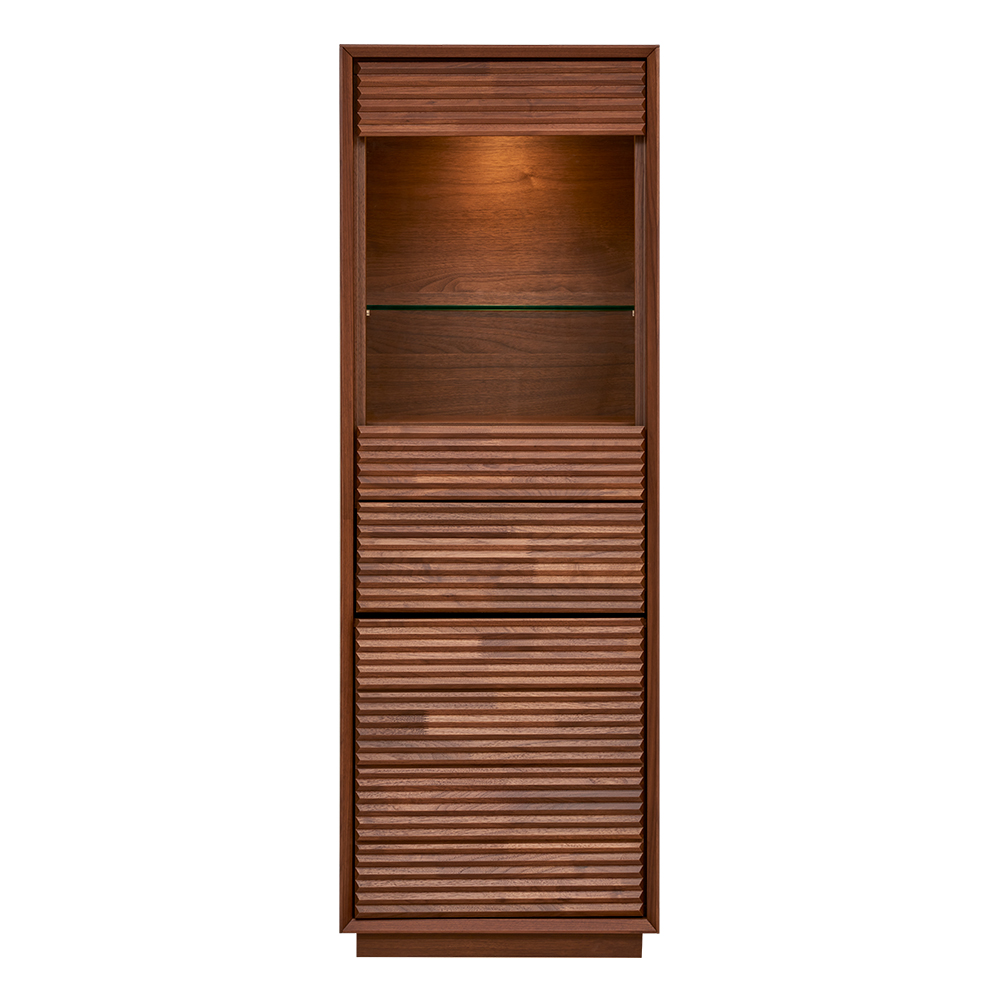 ウォールナットの無垢材に、削り出し細工を施したモダンデザイン。